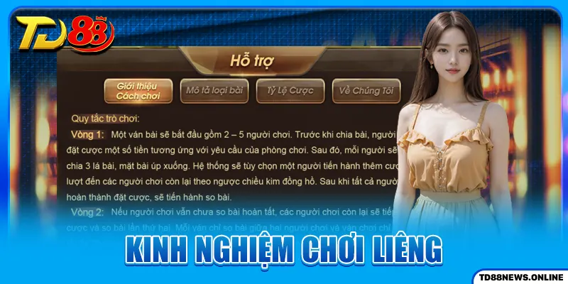 Kinh nghiệm chơi Liêng có ý nghĩa to lớn trong việc giúp bạn làm chủ ván bài, tăng cao cơ hội chiến thắng. Đây là trò chơi yêu cầu tư duy chiến thuật, am hiểu cách đọc bài cùng phán đoán tâm lý đối thủ định đoạt chiến thắng. Để trở thành cao thủ, bạn phải nắm rõ luật chơi và những kinh nghiệm thực chiến. Bài viết này TD88 sẽ cung cấp những kinh nghiệm bổ ích giúp bạn chinh phục mọi ván bài.